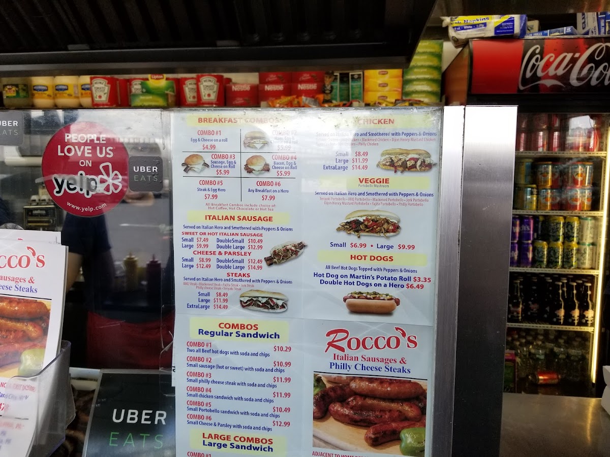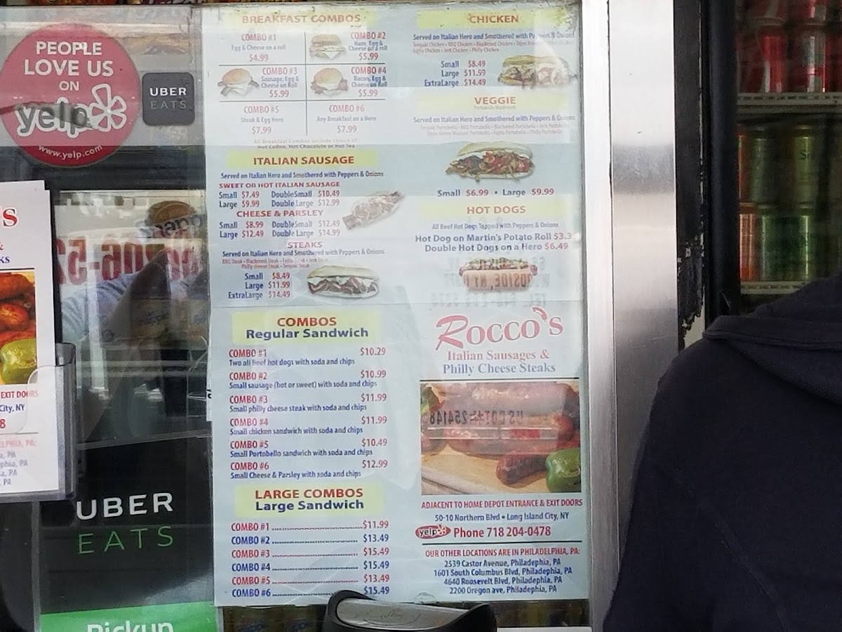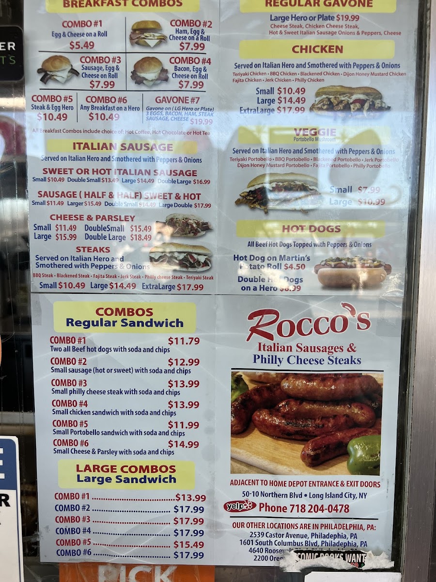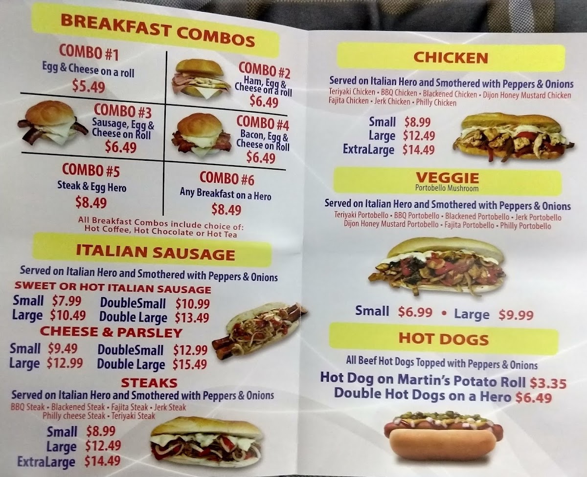 Served on Italian hero and smothered with peppers and onions.